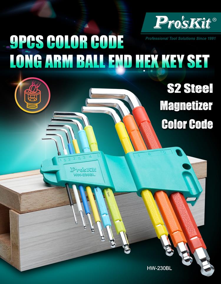 9PCS Color Code Extra Long Arm Ball Point Hex Key Set