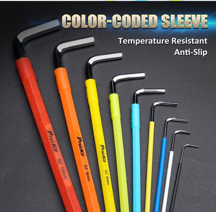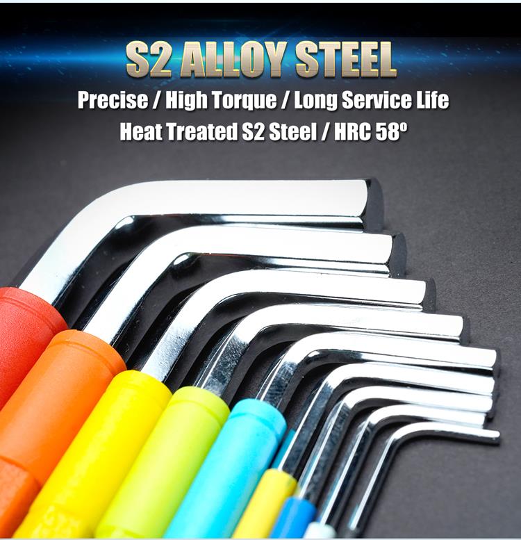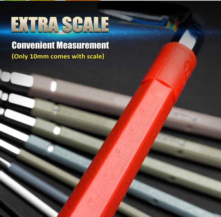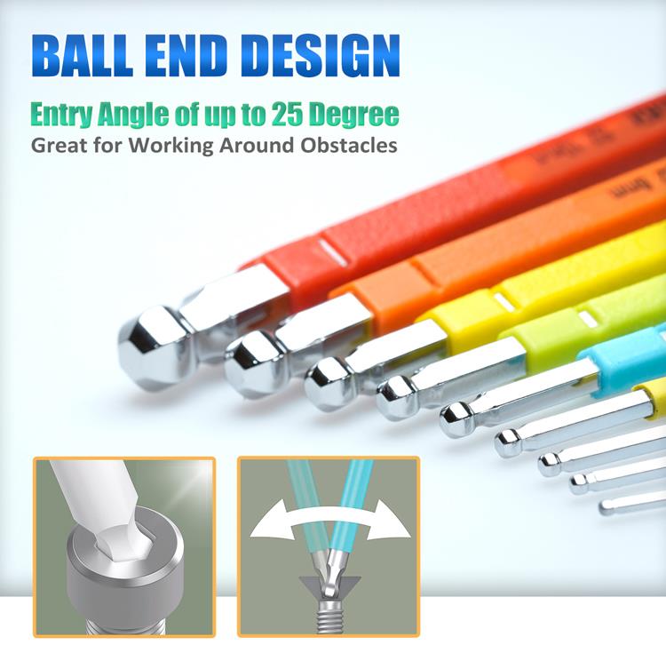9PCS Color Code Extra Long Arm Ball Point Hex Key Set: Durable S2 Steel, High Torque Ball End Design, Wide Working Angle Non-Slip Color Coded Handle