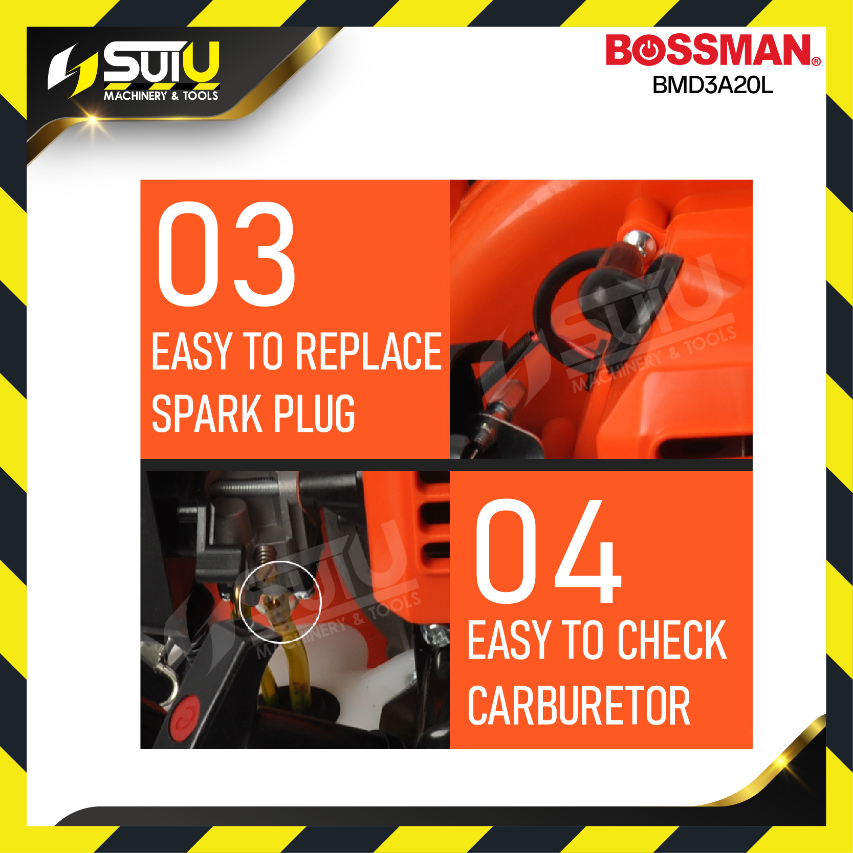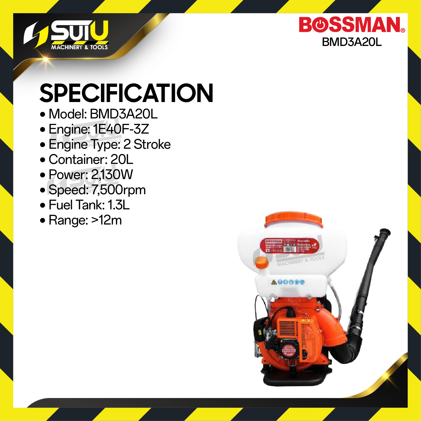 +PSPECIFICATIONS+P - Model : BMD3A20L - Engine : 1E40F-3Z - Engine Type : 2 Stroke - Container : 20L - Power : 2130W - Speed : 7500RPM - Fuel tank : 1.3L - Range : >12M