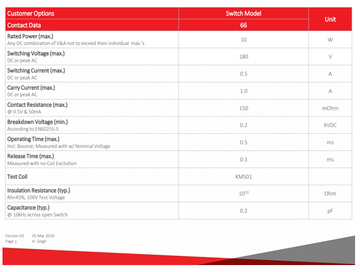 STANDEX-MEDER KSK-1A66/3 SERIES REED SWITCH