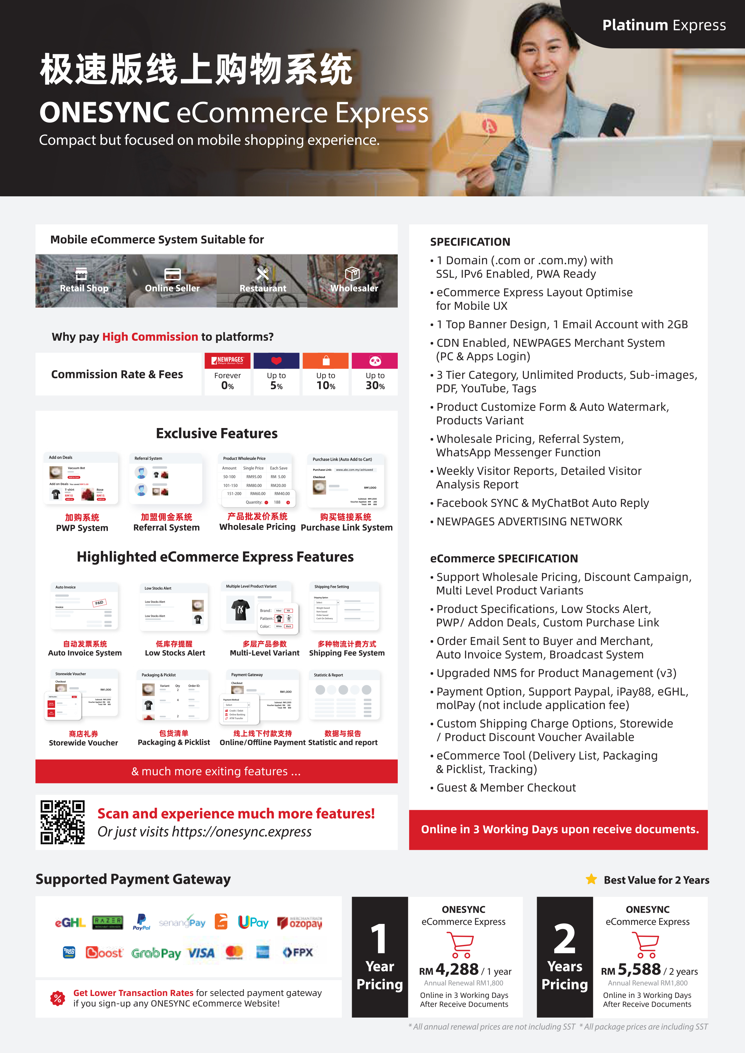 The ONESYNC PLATINUM eCommerce Express Plan helps to make your business ONLINE!!!