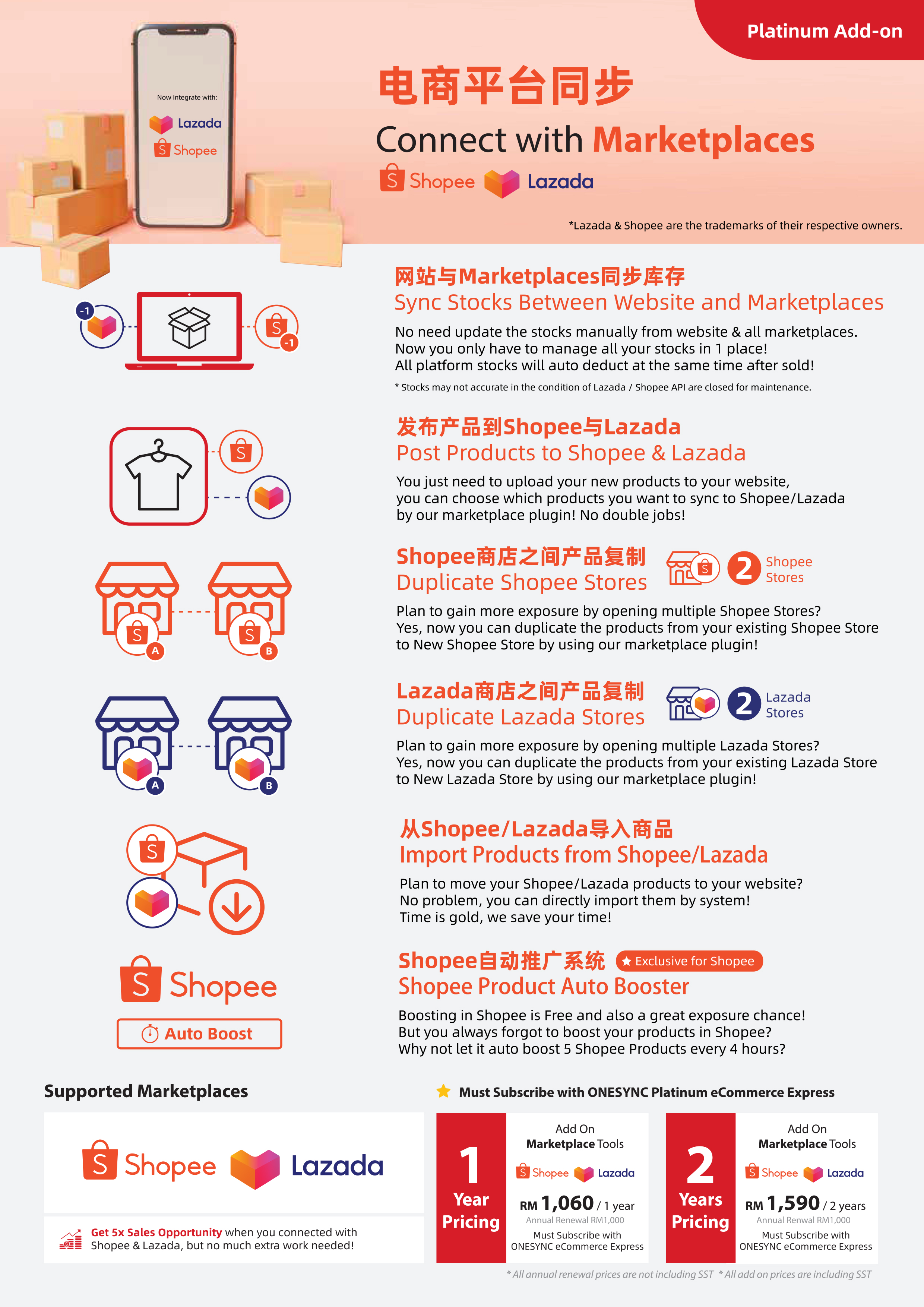 No need update the stocks manually from website and Shopee / Lazada Marketplace.