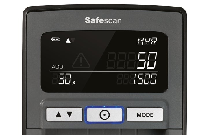 The 185-S has an intuitive control panel and a large, crisp display. Three clearly labelled buttons provide easy access to all its features. The spacious LCD screen tells you exactly what you need to know: currency type, denomination, and number of bills authenticated. If you’ve turned on the ADD function, it will also tell you the total value of banknotes counted. And since it takes less than half a second to verify each bill, you’ll have your answer before the customer can even blink.