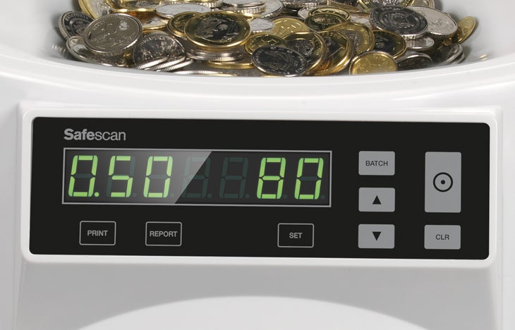 With a roomy hopper that can hold 500 coins and a counting speed of 220 coins per minute, the Safescan 1250 will have your cash drawer counted in a flash. Simply pour all the coins from your till or bag into the hopper—no need to sort them in advance—and press start.