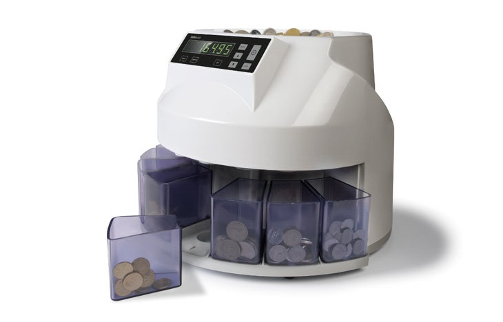 To prevent messy overflow, the 1250 will automatically pause when one of its coin cups is full; simply empty the cup and press start to resume counting.