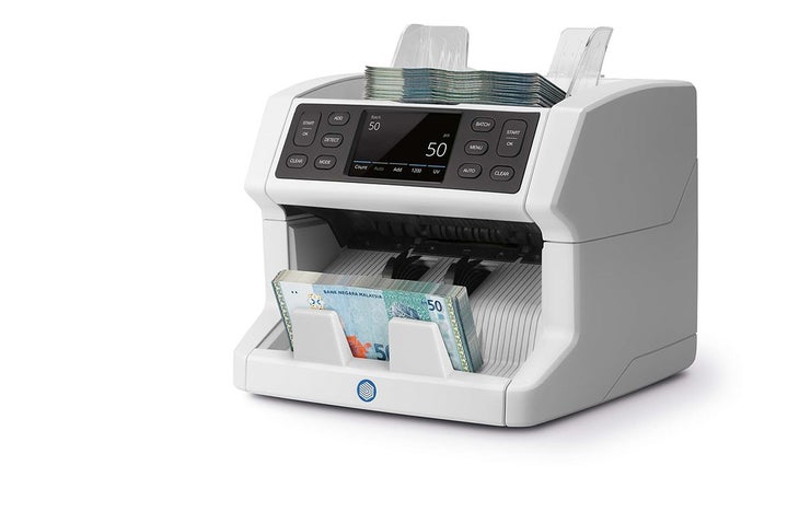 - Rapidly counts banknotes thanks to its large hopper capacity and continuous feeding