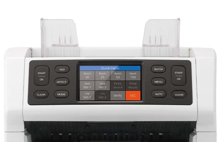 Use the add feature to automatically add up the amount of notes counted across different runs and use the batch function to create equal stacks of banknotes. You can even save your own personal pre-sets. Simply choose the preferred feature and let the 2850 do all the work.