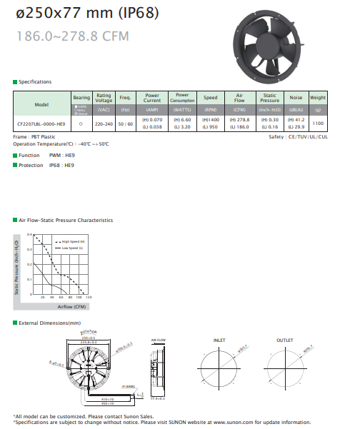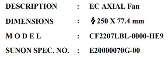 SUNON CF2207LBL-0000-HE9 250x77 MM (IP68) MAGLEV EC AXIAL FAN