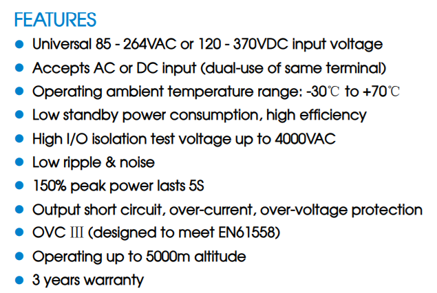 MORNSUN LM100-20B05 - AC/DC 100W ENCLOSED SWITCHING POWER SUPPLY