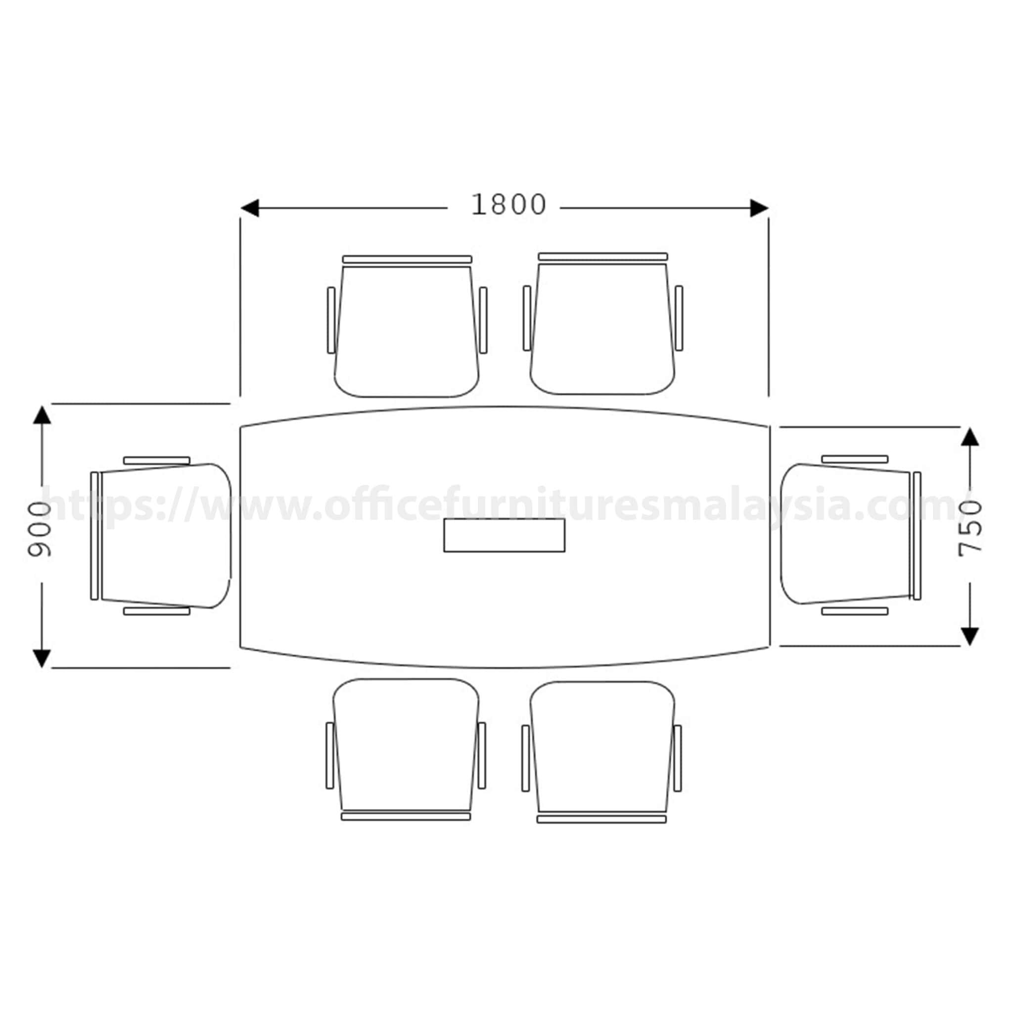 - 1 x Boat Shape Conference Table Size : W 1800 mm x D 900 / 750 mm x H 750 mm