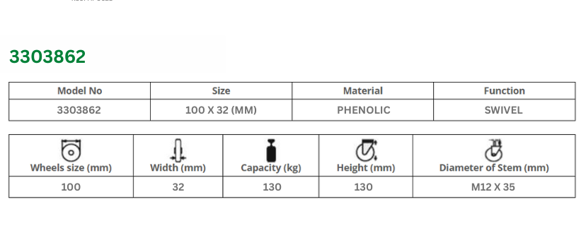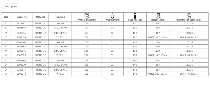 The Globe Light Medium Duty M12 Screw Stem Phenolic Castor combines high temperature resistance with smooth and reliable movement. Built with a phenolic resin wheel, it performs exceptionally well in hot, oily, or chemical-prone environments. The M12 screw stem design allows for secure and adjustable installation, ideal for light to medium-duty applications.