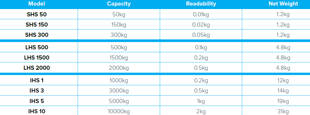 flexibility. LHS and IHS crane scales feature die cast aluminium housing. A standard remote control allows scale operation from a safe distance.