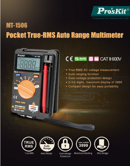 PRO'SKIT MT-1506 POCKET TRUE-RMS AUTO RANGE MULTIMETER