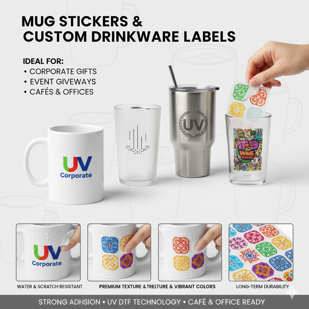 Using high-quality sticker materials and UV DTF technology, mug stickers offer: