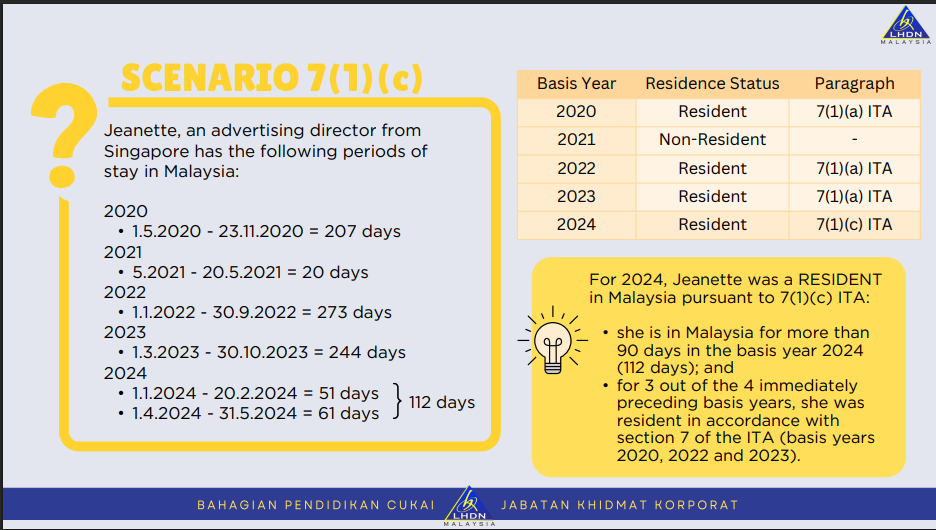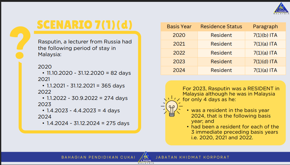 These rules are important to understand in the case of assessing what is resident status in Malaysia in your situation.