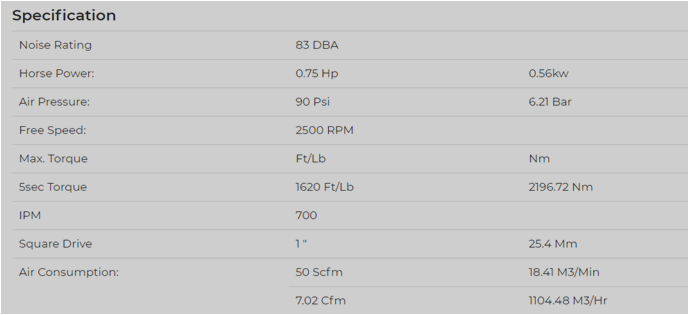 MPT-68360L INDUSTRIAL 1'' IMPACT WRENCH ( D-HANDLE, LONG ANVIL)