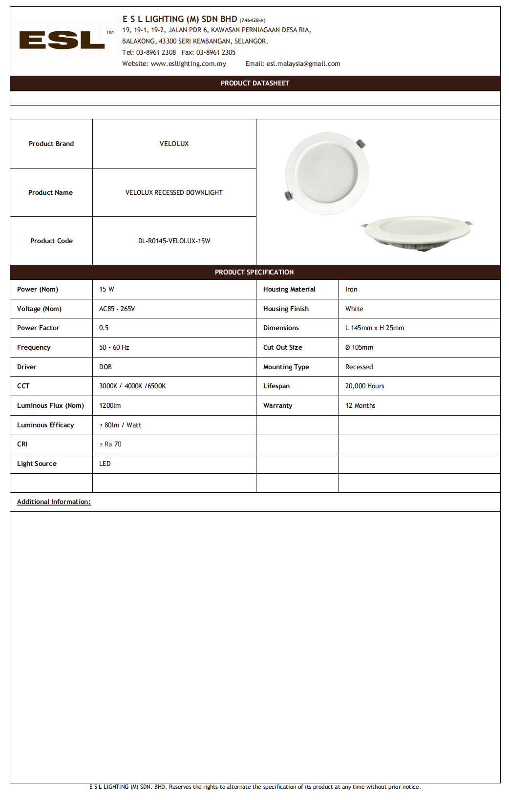 Lihat detail lebih lanjut tentang E S L Lighting (M) Sdn Bhd