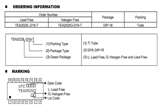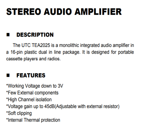 UTC TEA2025 STEREO AUDIO AMPLIFIER