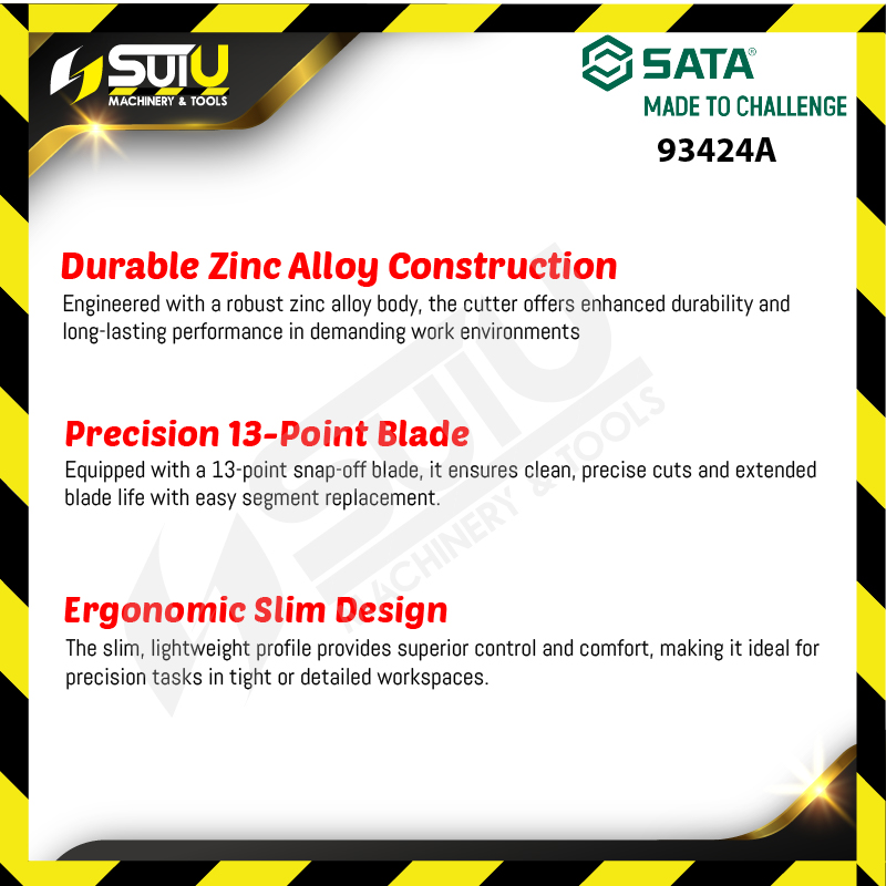 - Equipped with a 13-point snap-off blade,it ensures clean,precise cuts and extended blade life with easy segment replacement