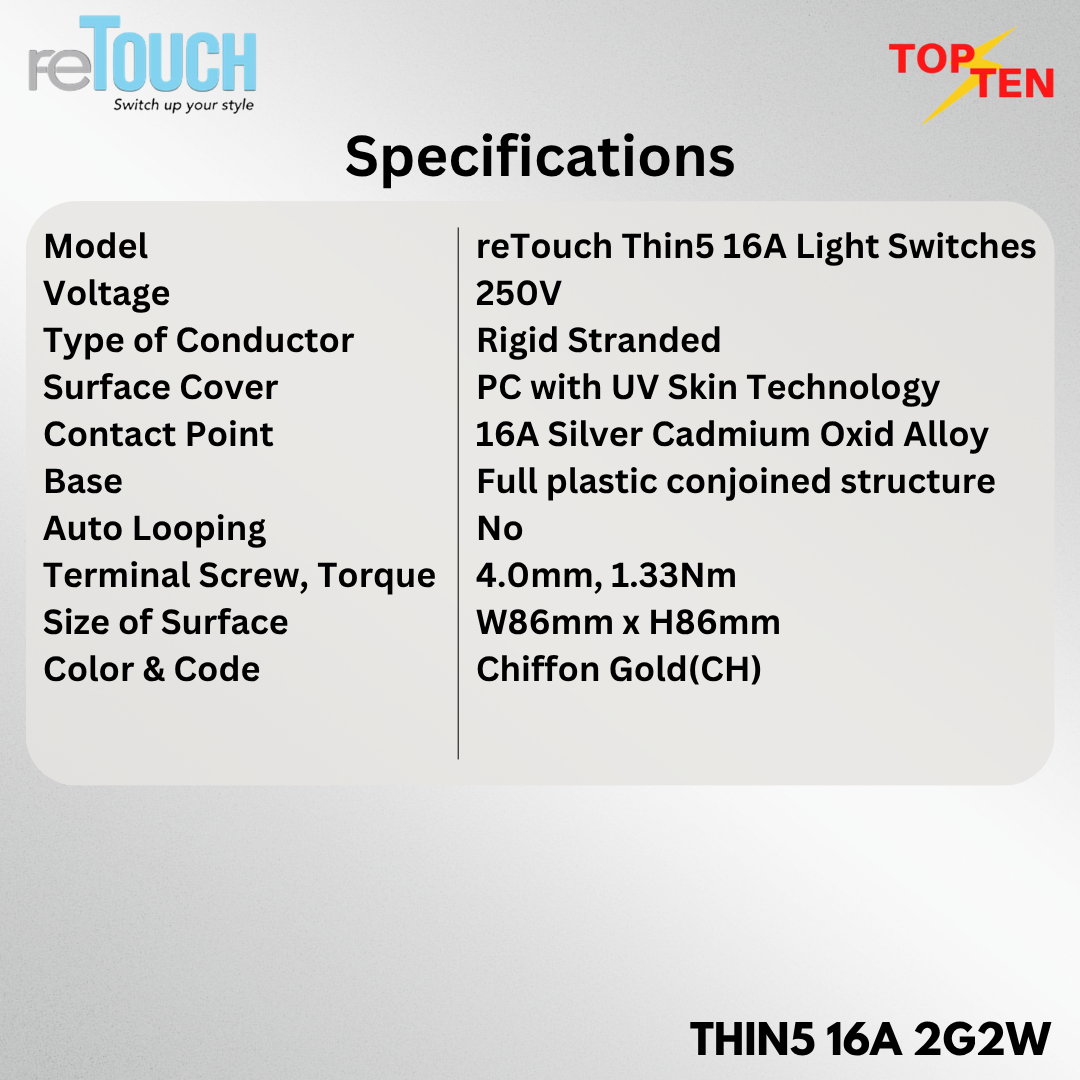 reTouch Thin5 16A 2Gang 2Way