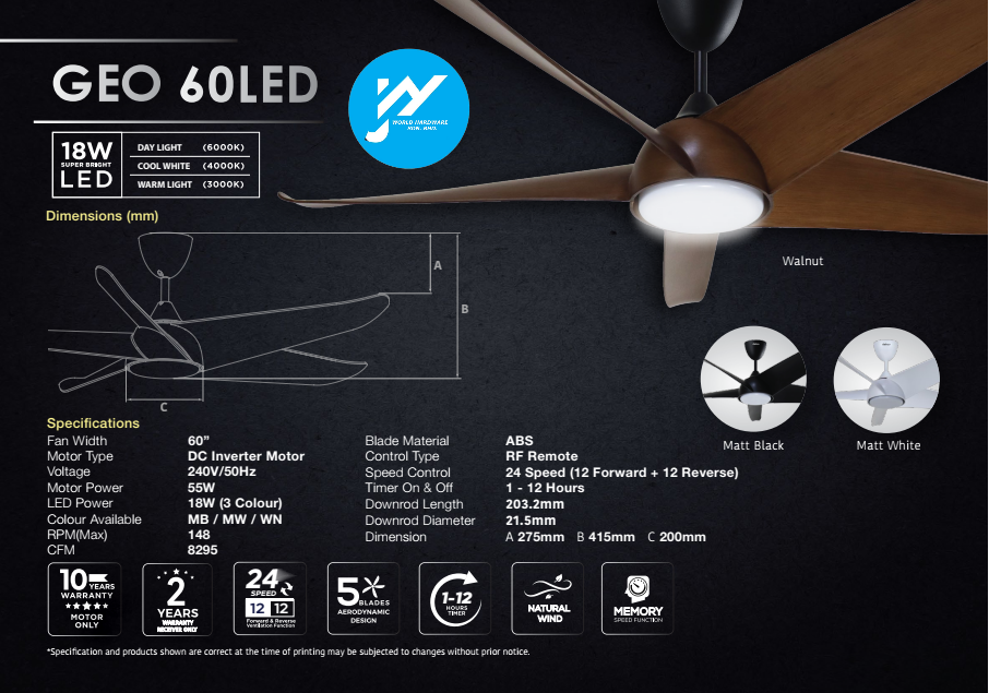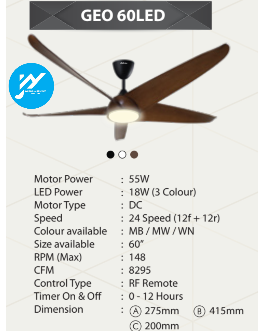 DEKA+ Ceiling Fan GEO 60'' LED Remote Control 12+12 Speed 5 ABS Blade Kipas Siling Syiling Cooling 风扇