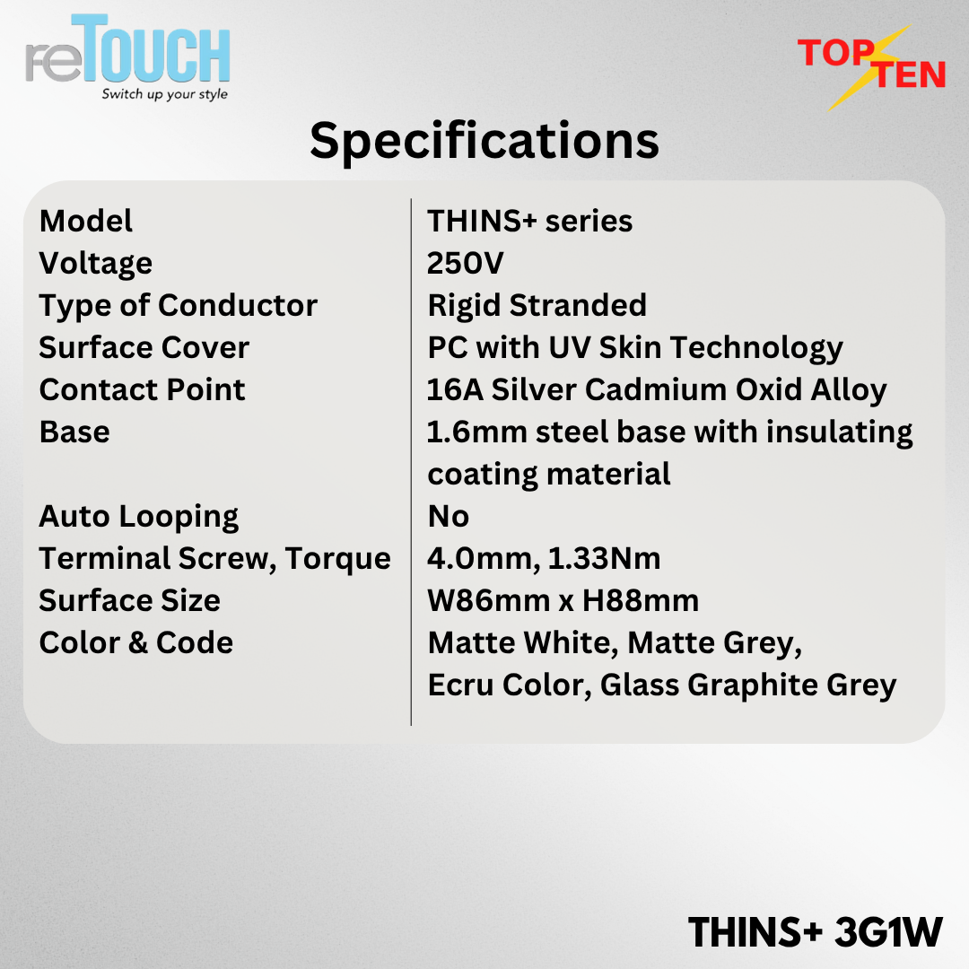 reTouch THINS+ 3 Gang 1 Way Light Switch