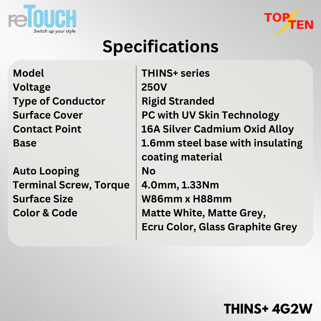 reTouch THINS+ 4 Gang 2 Way Light Switch