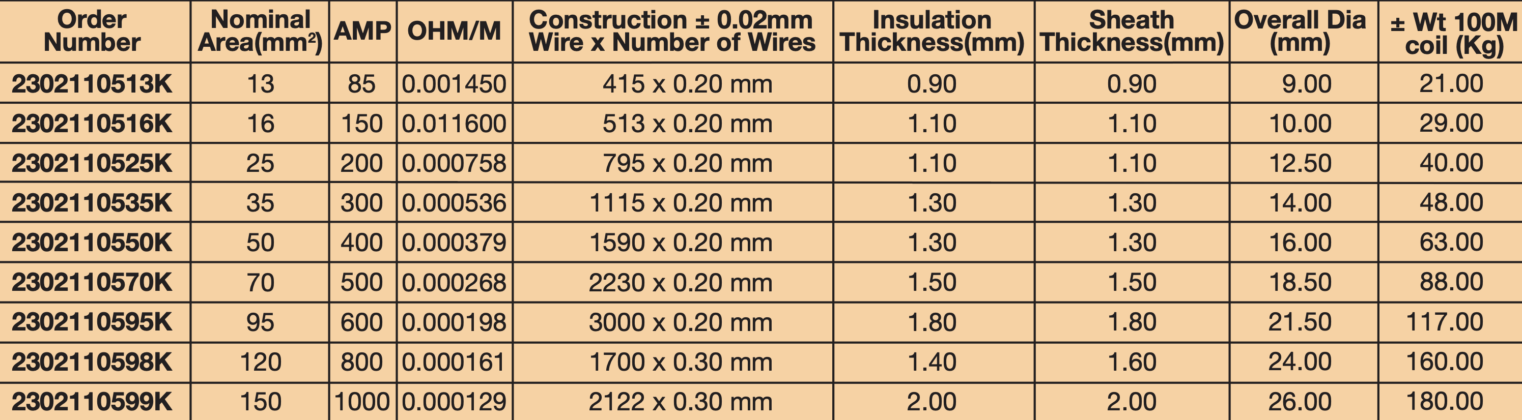 Special material NBR (Nitrile Butadiene Rubber) heavy duty outer Sheath/ Jacket ensures flexibility; toughness; fire redundant; resistance to acid; solvents, and fuel resistance.