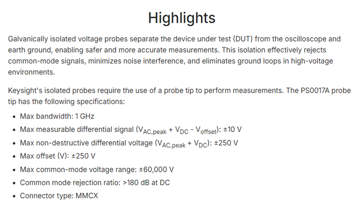 KEYSIGHT PS0017A Isolated Probe Tip, ± 10V, MMCX