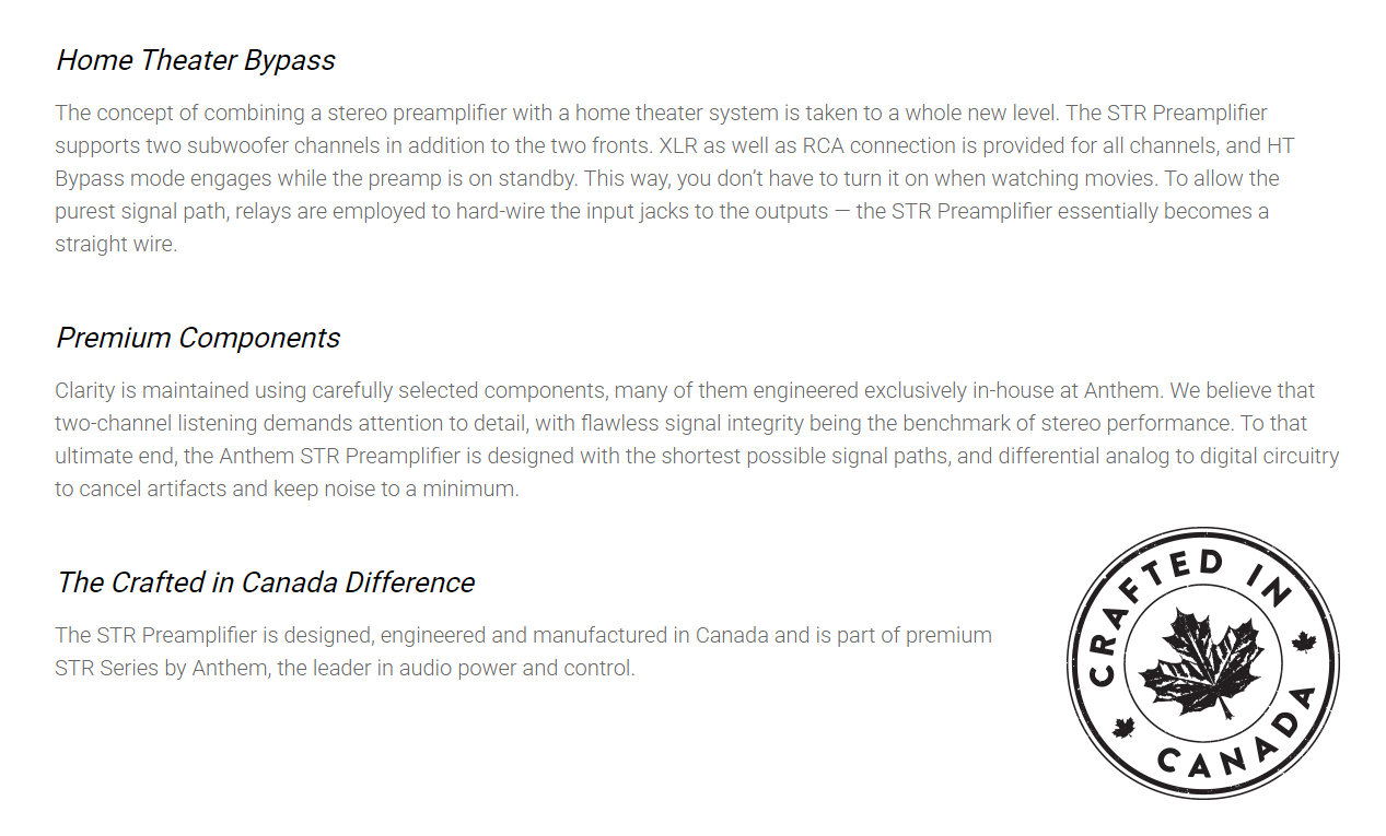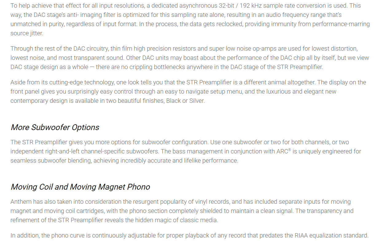 Anthem STR Series Preamplifier