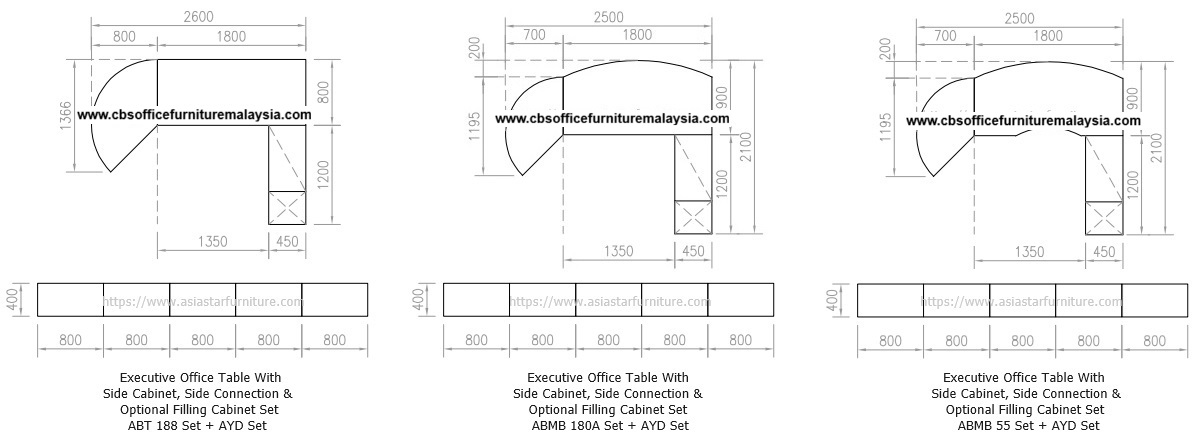 3. BERLIN 8.2 Feet Superior Executive Table with Side Cabinet & Side Connection Set (ABMB 55)