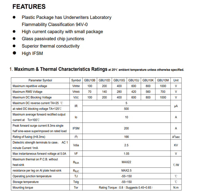 LRC GBU10B Bridge Rectifiers