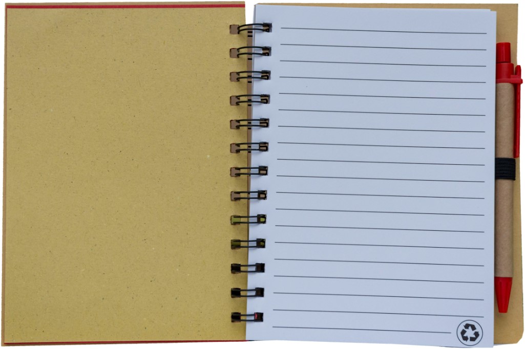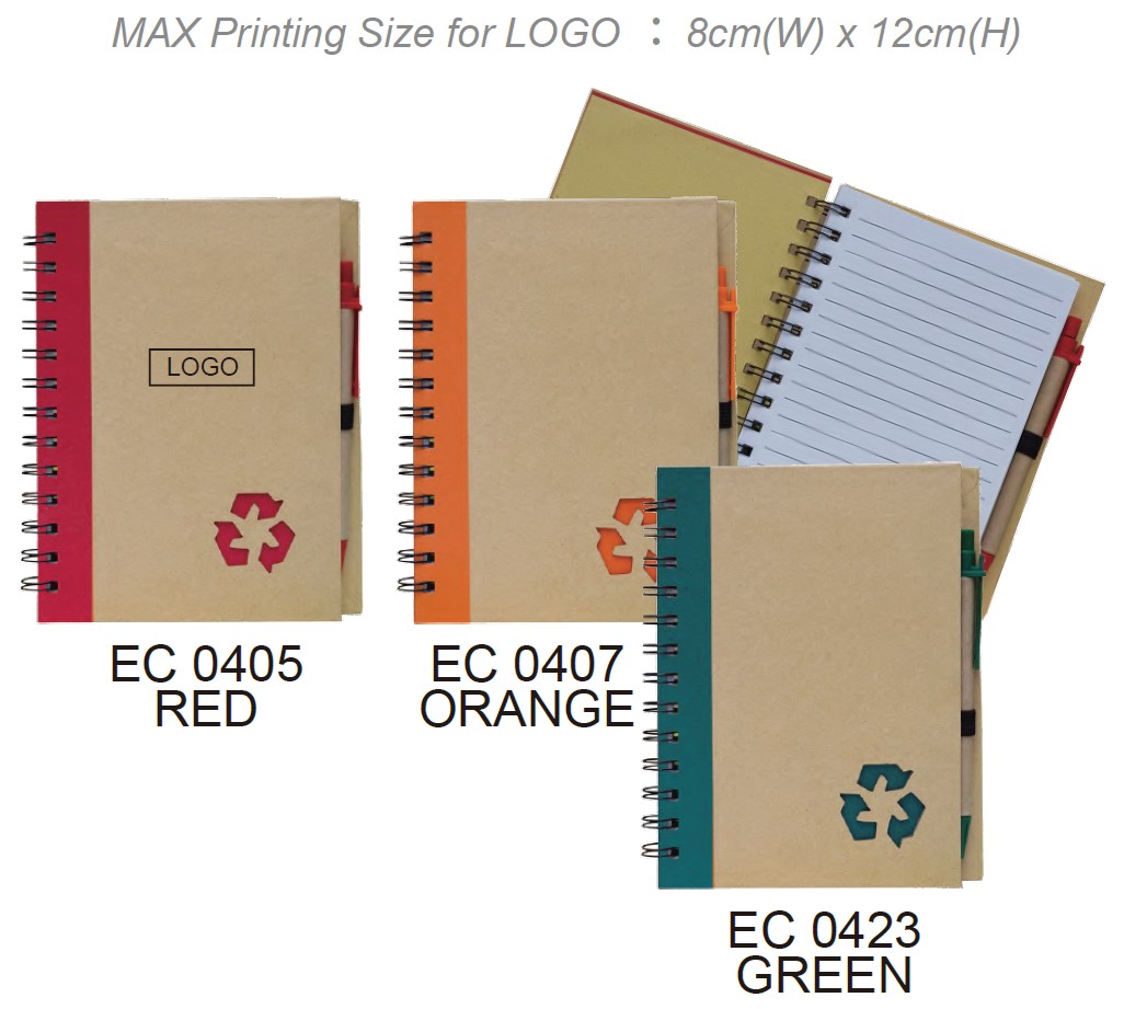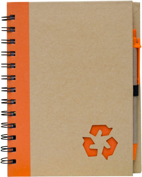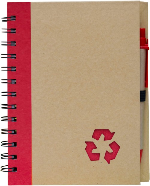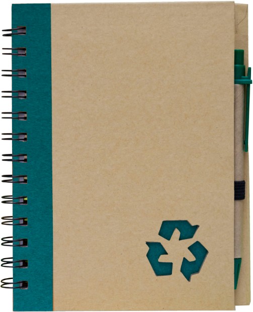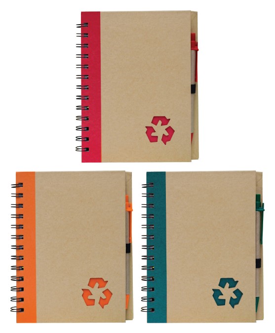 Material: Eco Cover with Pen — A compact and eco-friendly notepad with a recyclable cover and a matching pen.