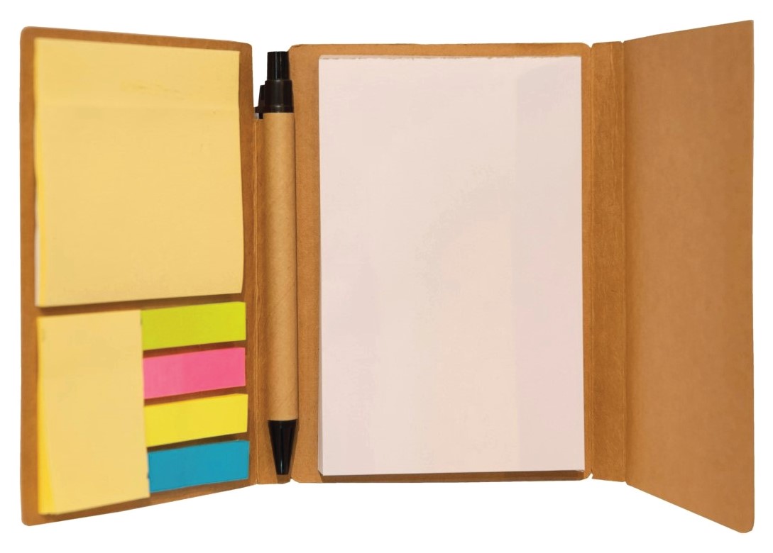 Material: Eco Notepad with Pen — A practical and eco-friendly notepad with a matching pen made from recycled materials, perfect for sustainable note-taking anytime.