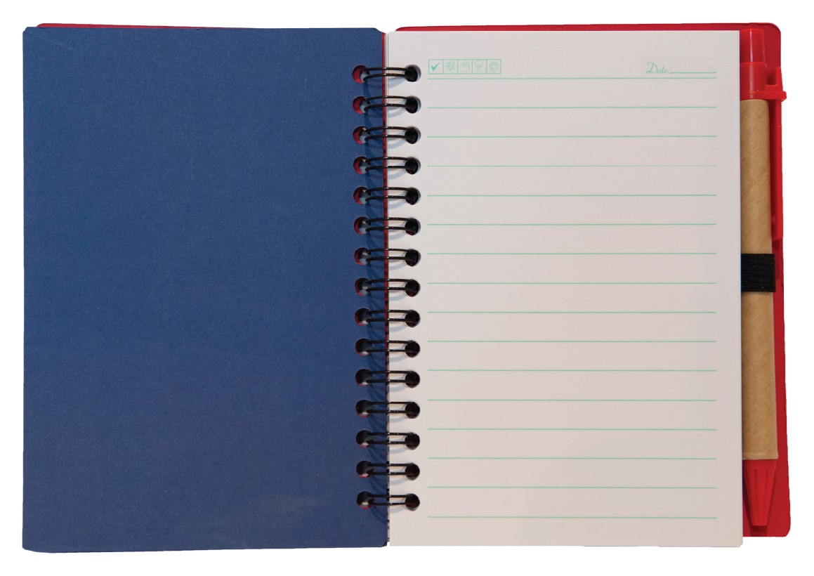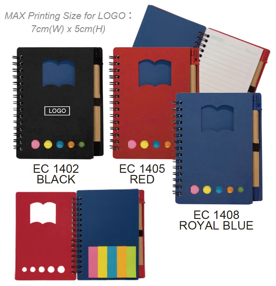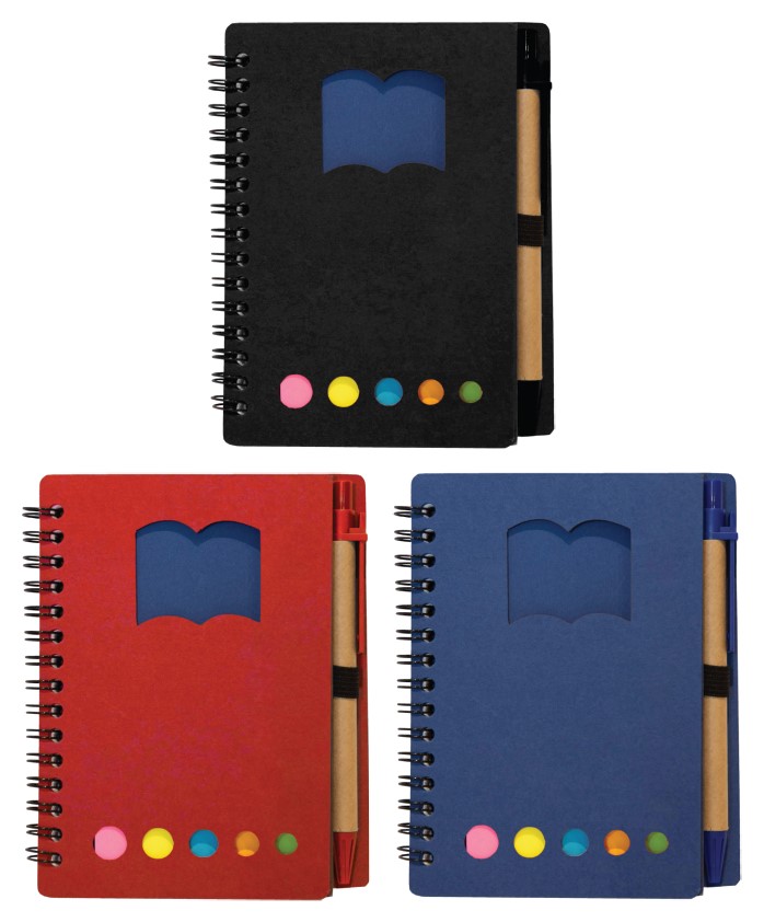 Material: Eco Notepad with Pen — A practical and eco-friendly notepad with a matching pen made from recycled materials, perfect for sustainable note-taking anytime.
