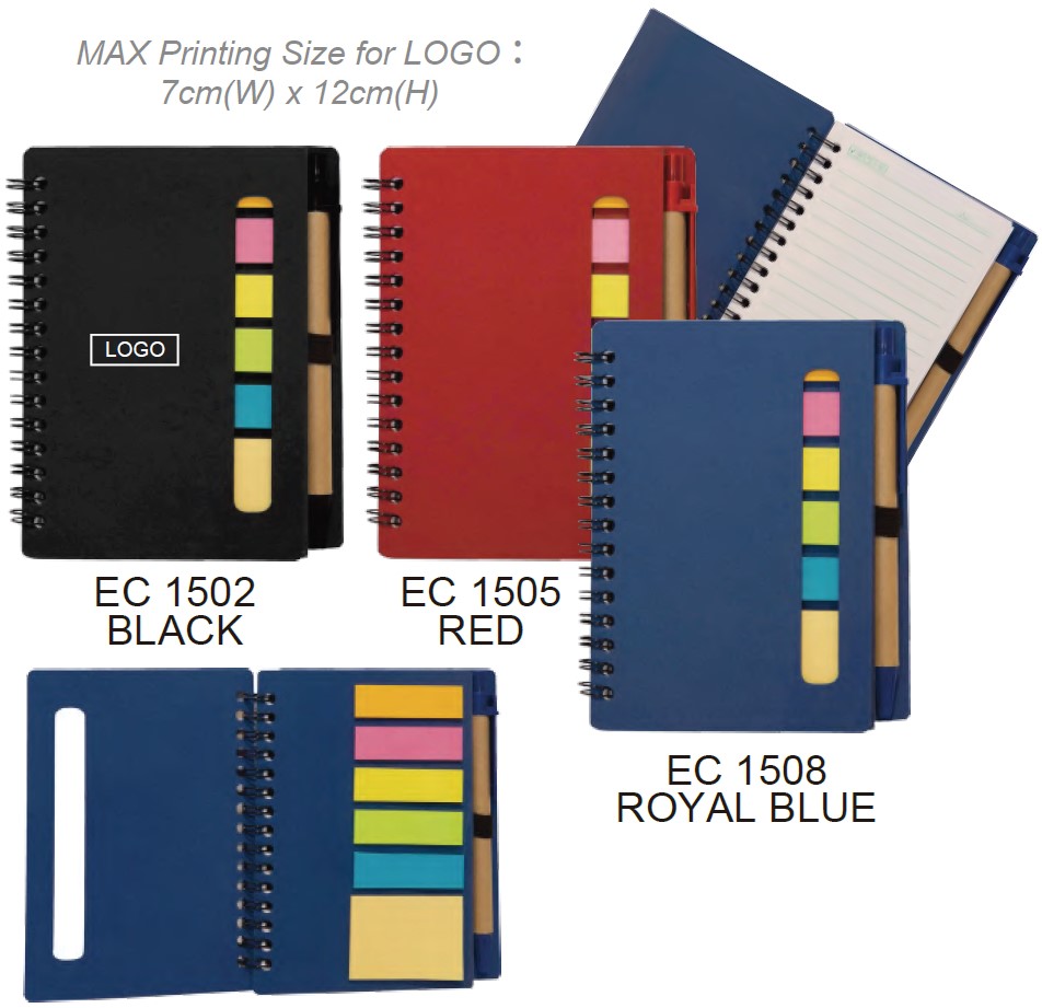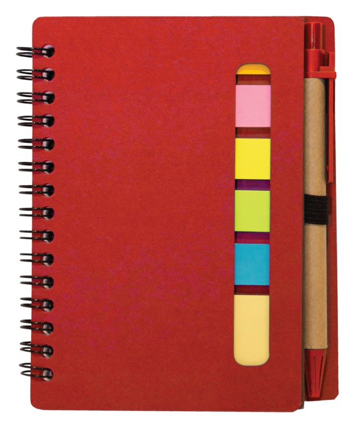 Material: Eco Notepad with Pen — A practical and eco-friendly notepad with a matching pen made from recycled materials, perfect for sustainable note-taking anytime.