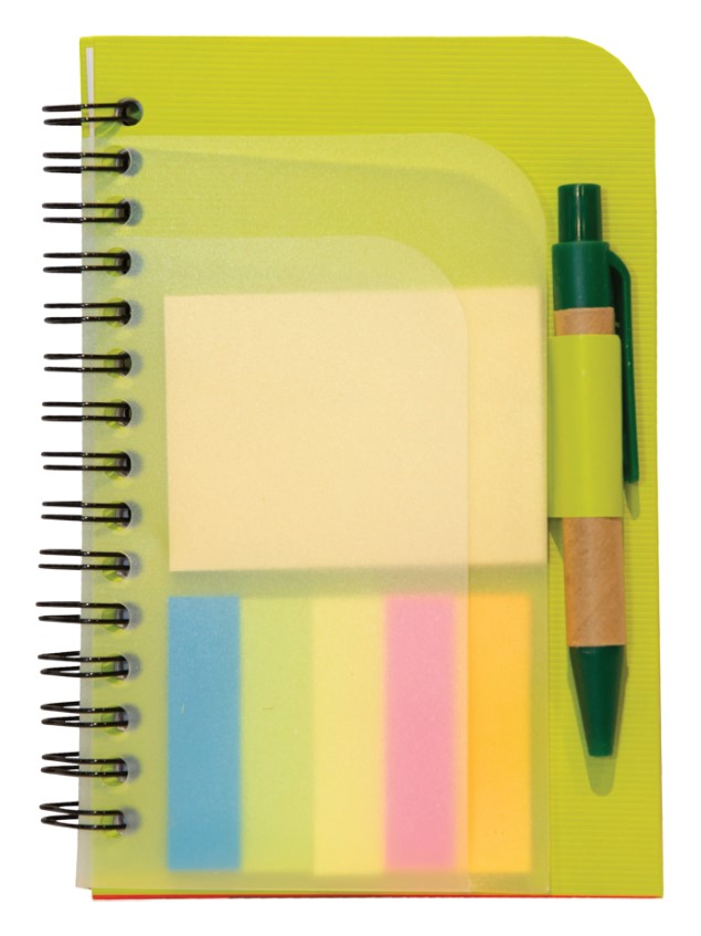 Material: Eco Notepad with Pen — A practical and eco-friendly notepad with a matching pen made from recycled materials, perfect for sustainable note-taking anytime.