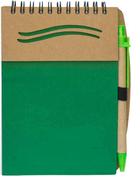 Material: NotebookEco Notepad with Pen — A practical and eco-friendly notepad with a matching pen made from recycled materials, perfect for sustainable note-taking anytime.