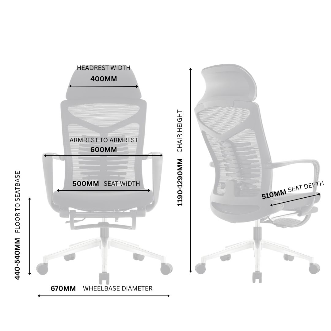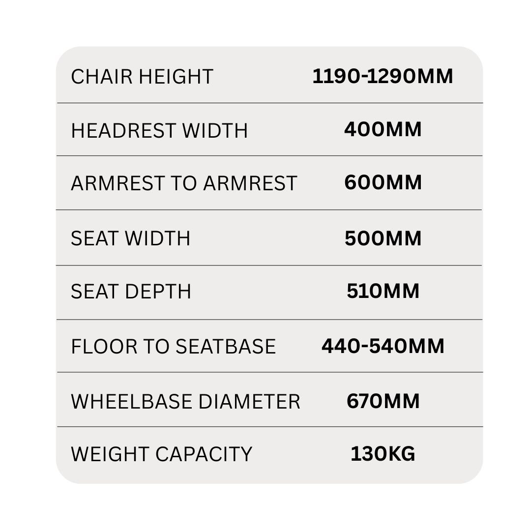 Overall Chair Dimensions: 600W x 520D x 1190-1290H (mm)