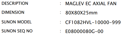 SUNON CF1082HVL-10000-999 80X80X25 MM MAGLEV EC AXIAL FAN