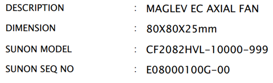 SUNON CF2082HVL-10000-999 80X80X25 MM MAGLEV EC AXIAL FAN