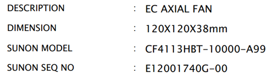 SUNON CF4113HBT-10 000-A99 120x120x38 MM (IP21/IP55) MAGLEV EC AXIAL FAN