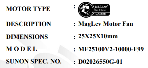 SUNON MF25100V2-10000-A99 25X25X10MM MAGLEV MOTOR FAN