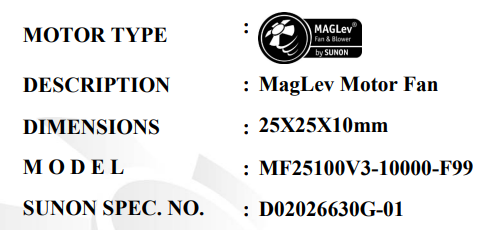 SUNON MF25100V3-10000-A99 25X25X10MM MAGLEV MOTOR FAN
