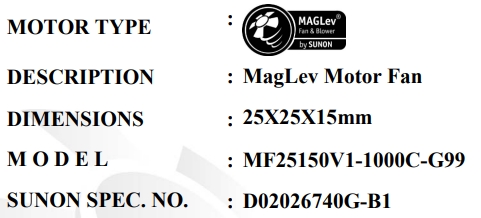 SUNON MF25150V1-10000-A99 25x25x15MM MAGLEV MOTOR FAN