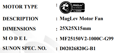 SUNON MF25150V2-10000-A99 25x25x15MM MAGLEV MOTOR FAN