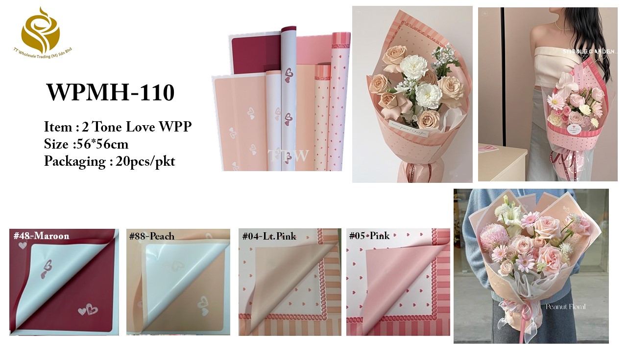 2-Tone Love Flower Wrapping Paper -/ Love Theme Flower Wrapping Paper - Dual Color Design for Special Occasions (WPMH-110)