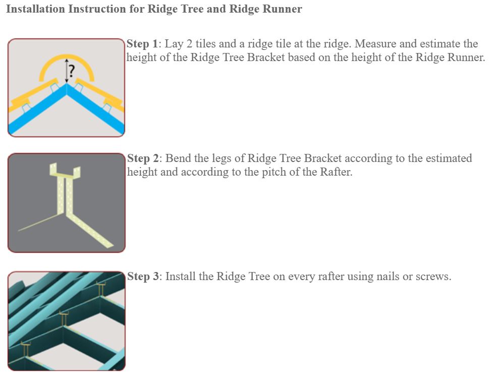 LAMA Ridge Tree is a bracket that provides fast and convenient installation as well as easy leveling of the ridge runner/ saddle.
