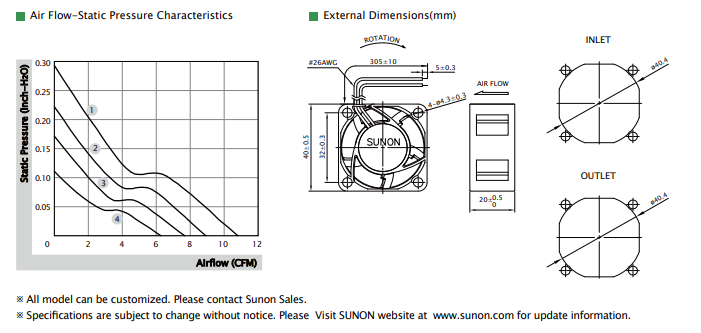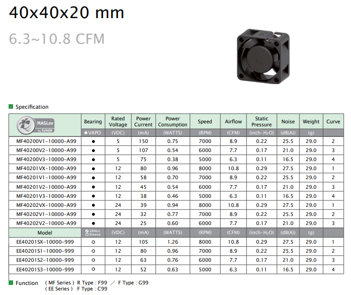 SUNON EE40201S2-10000-999 40x40x20MM DC BRUSHLESS FAN
