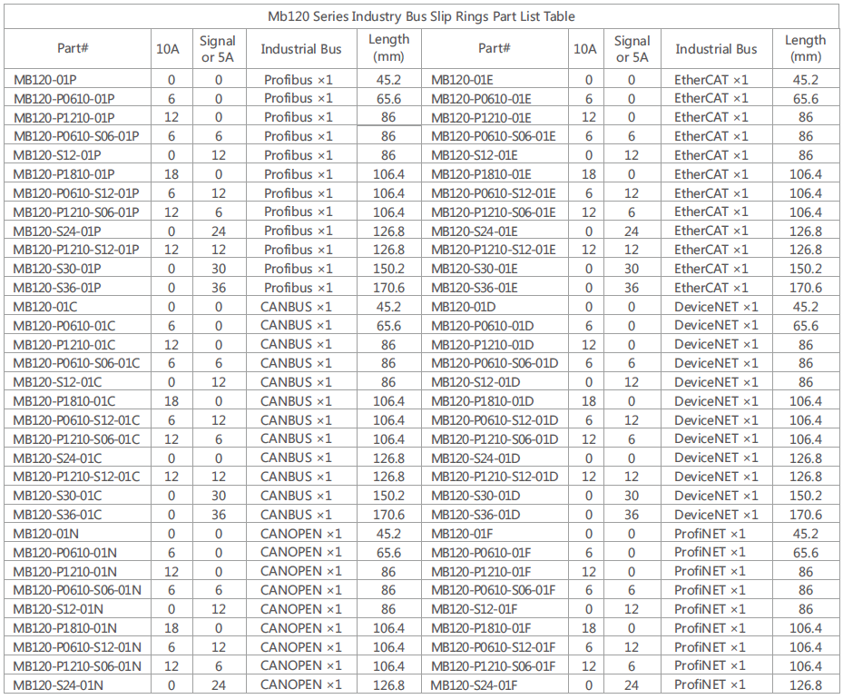 MB120 series is our standard series integral and precise industry bus slip ring , with bore size 12.7mm (1/2’’,